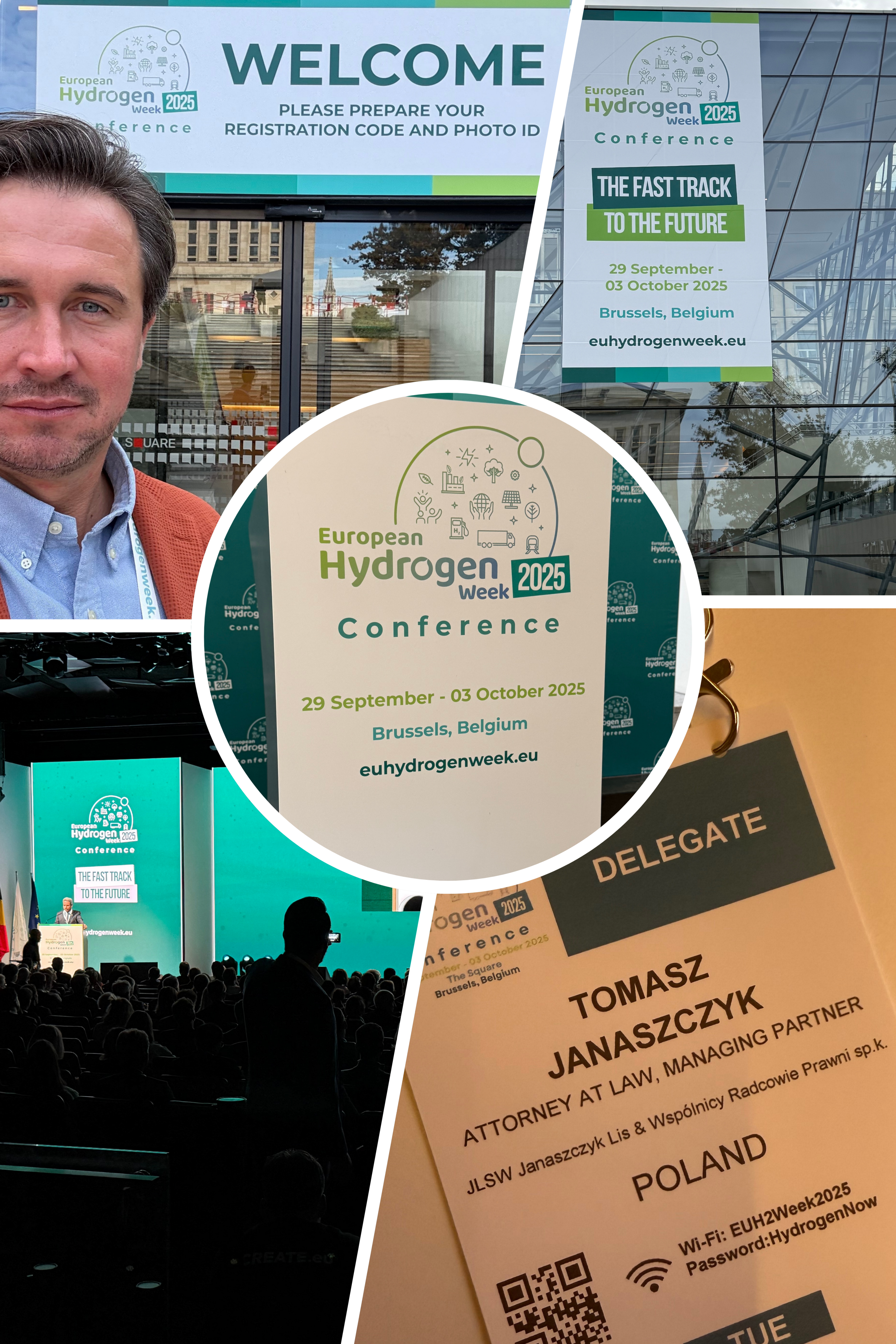 Nie mogło nas tu zabraknąć! Managing Partner JLSW, Tomasz Janaszczyk, bierze udział w European Hydrogen Week 2025. To spotkanie liderów i praktyków, gdzie rozmawia się o realnych wdrożeniach, regulacjach i finansowaniu projektów wodorowych i OZE.